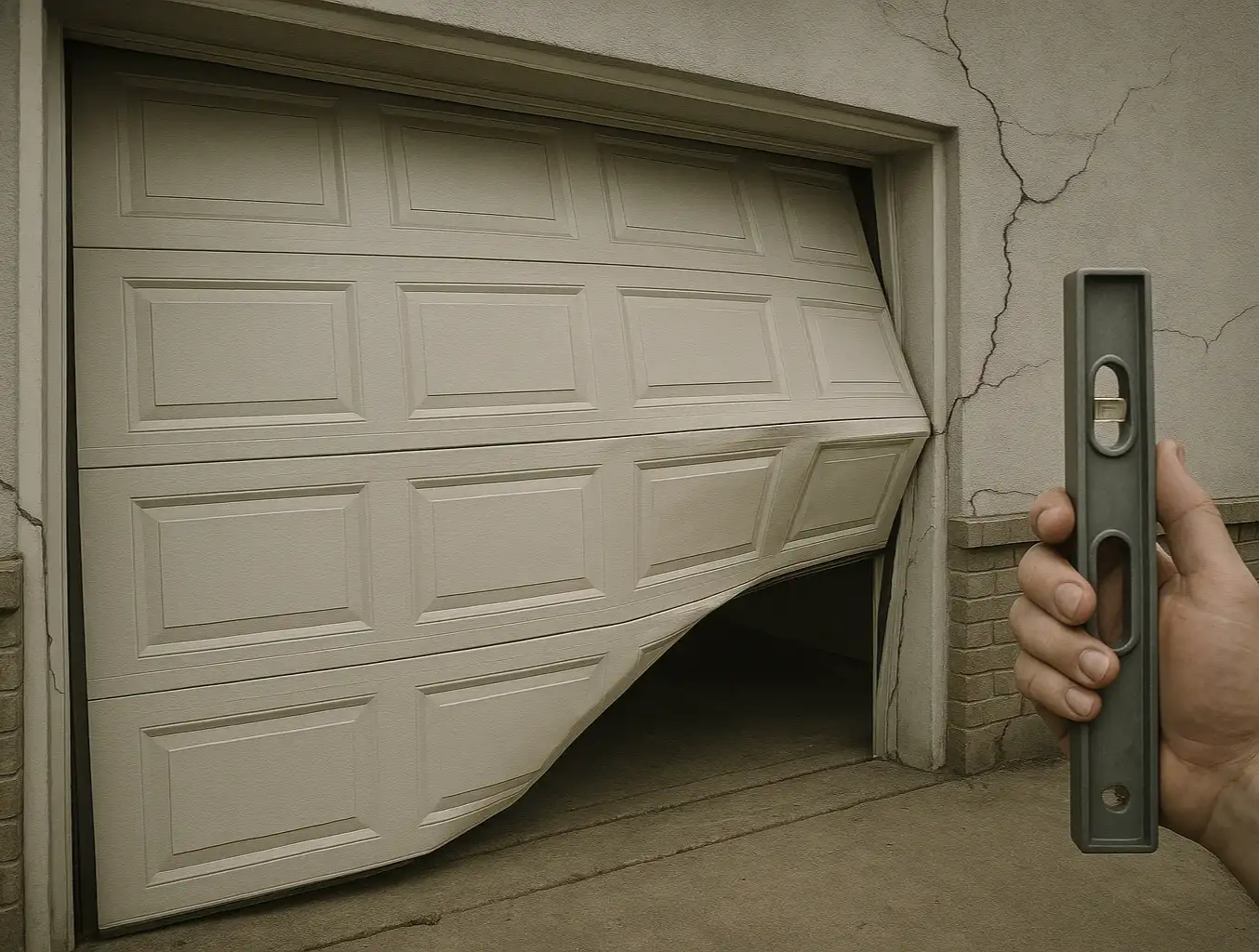 - Symptoms: You have a warped garage door frame plus one or more of the "RED" signs: stair-step cracks in the brick, significant drywall cracks, or sloping floors.