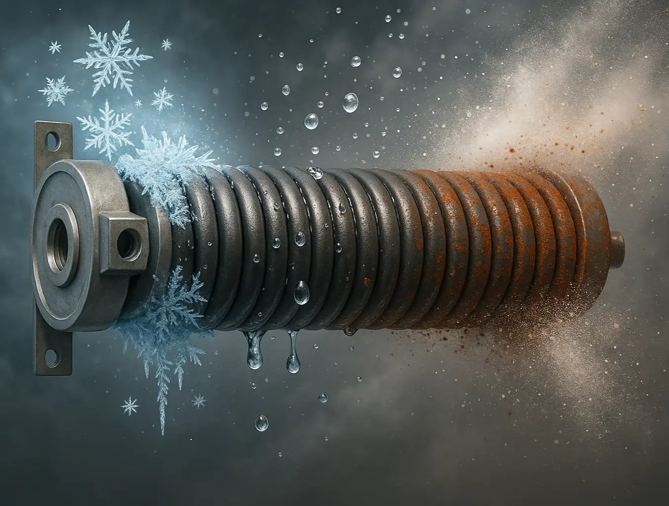Think of your garage door springs as a ticking clock. With every cycle, they wind and unwind under immense tension, lifting hundreds of pounds of weight. But here’s something most homeowners don’t realize: the weather controls how fast that clock ticks. Freezing cold, heavy humidity, and salty sea air can dramatically accelerate wear and tear, turning a 7-year spring into a 3-year failure waiting to happen.