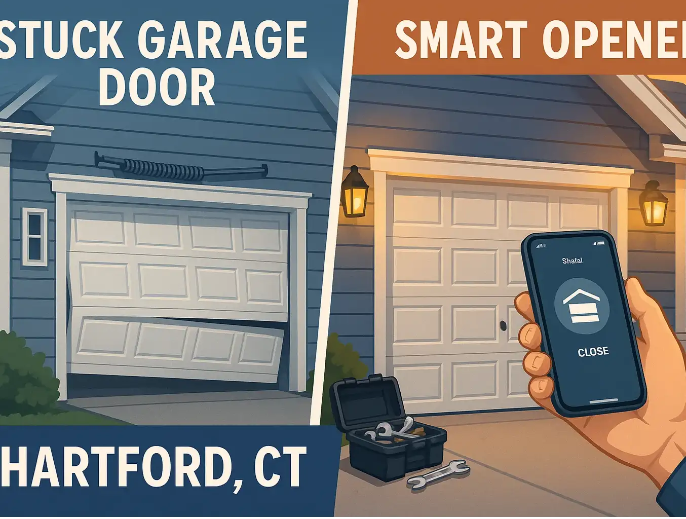 It’s a frosty Hartford morning. You’re already running five minutes late, coffee in hand, when you hit the button on your garage door opener. Nothing happens. Or worse, you hear a grinding noise, and the door moves a few inches before stopping crooked in its tracks.